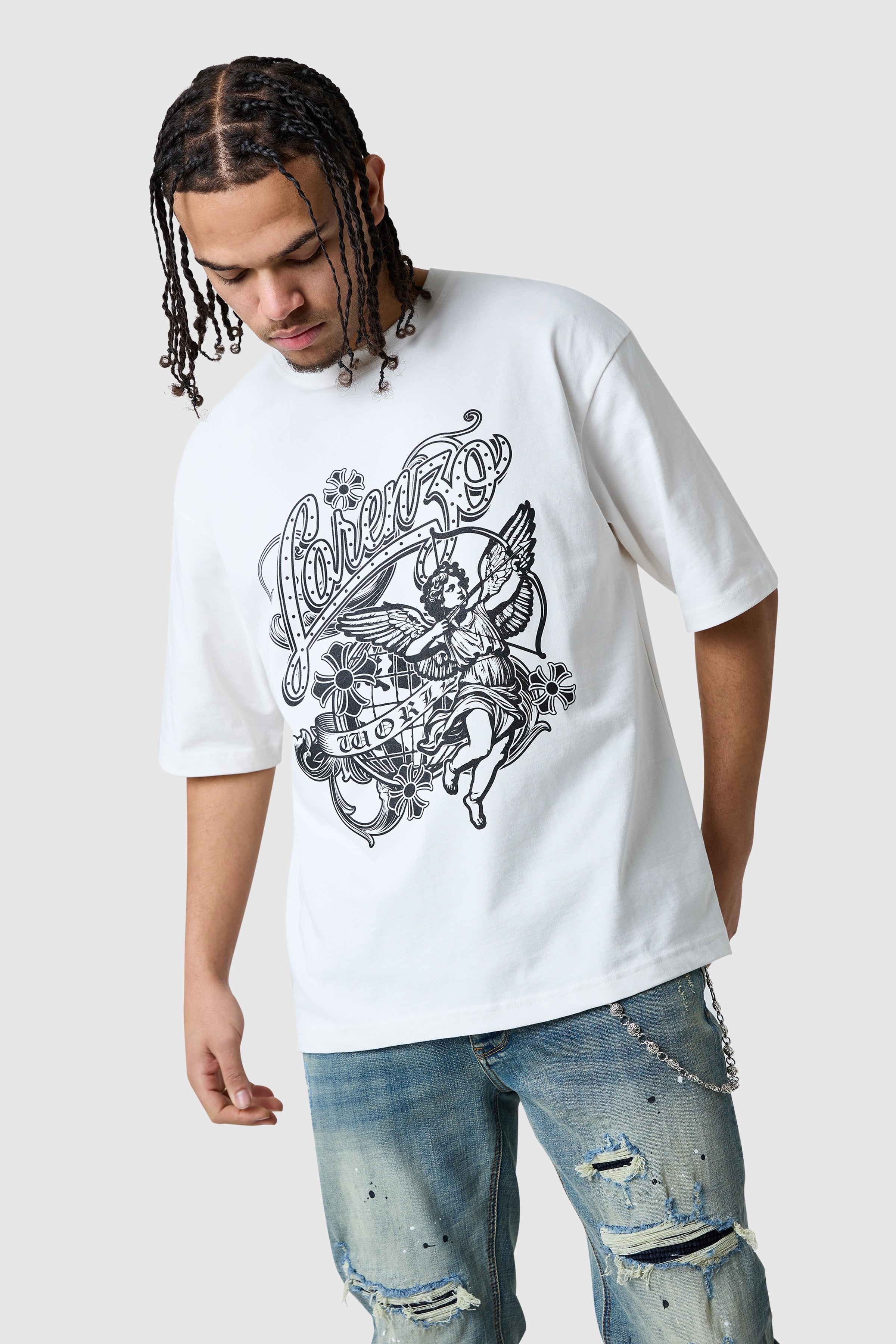 An everyday tee elevated with statement graphics. The Cherub Tee is crafted from soft cotton for a comfortable feel, featuring a classic silhouette finished with a bold graphic print on the front. Designed for easy styling, it’s a go-to piece for effortless streetwear looks.