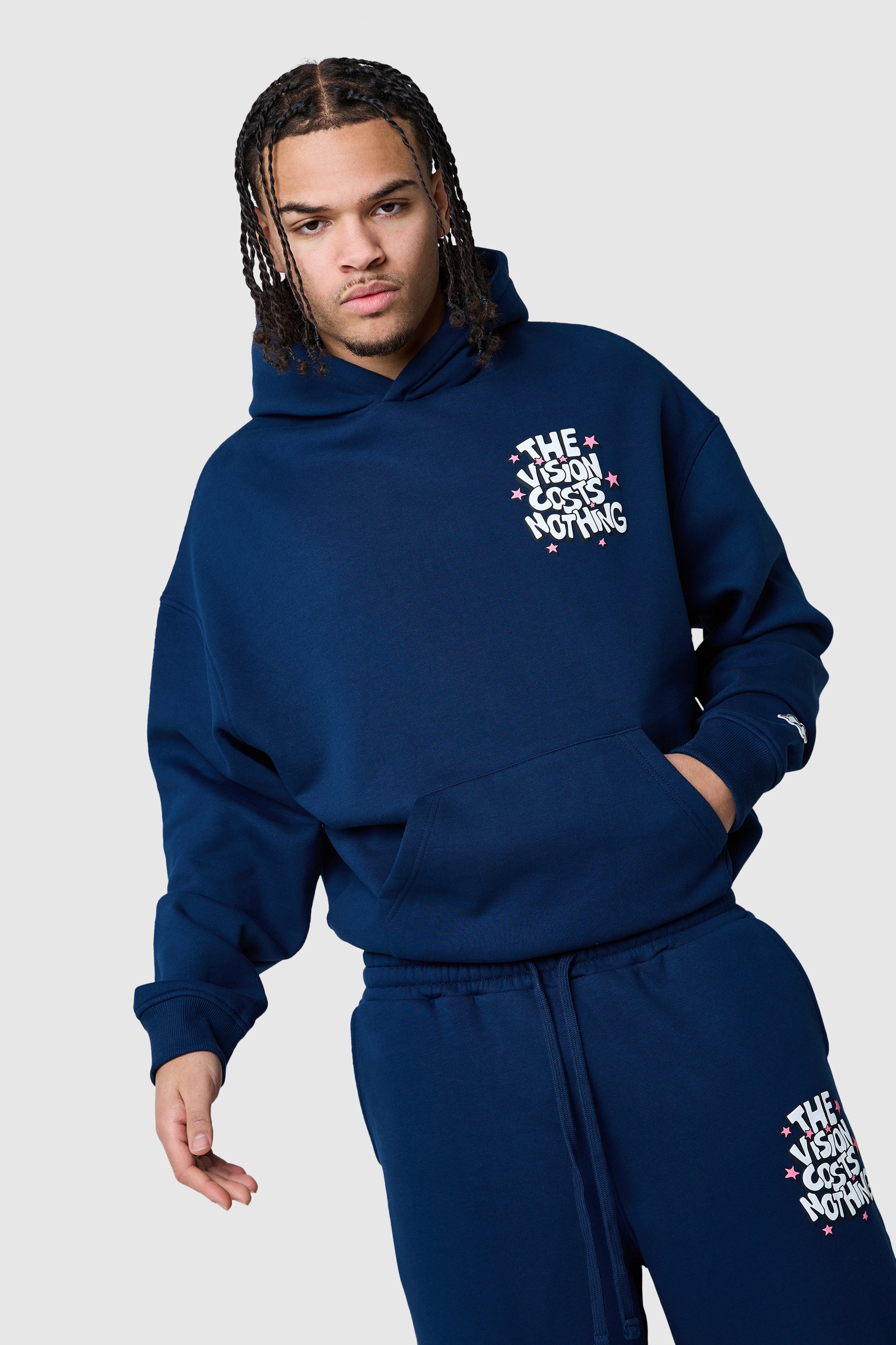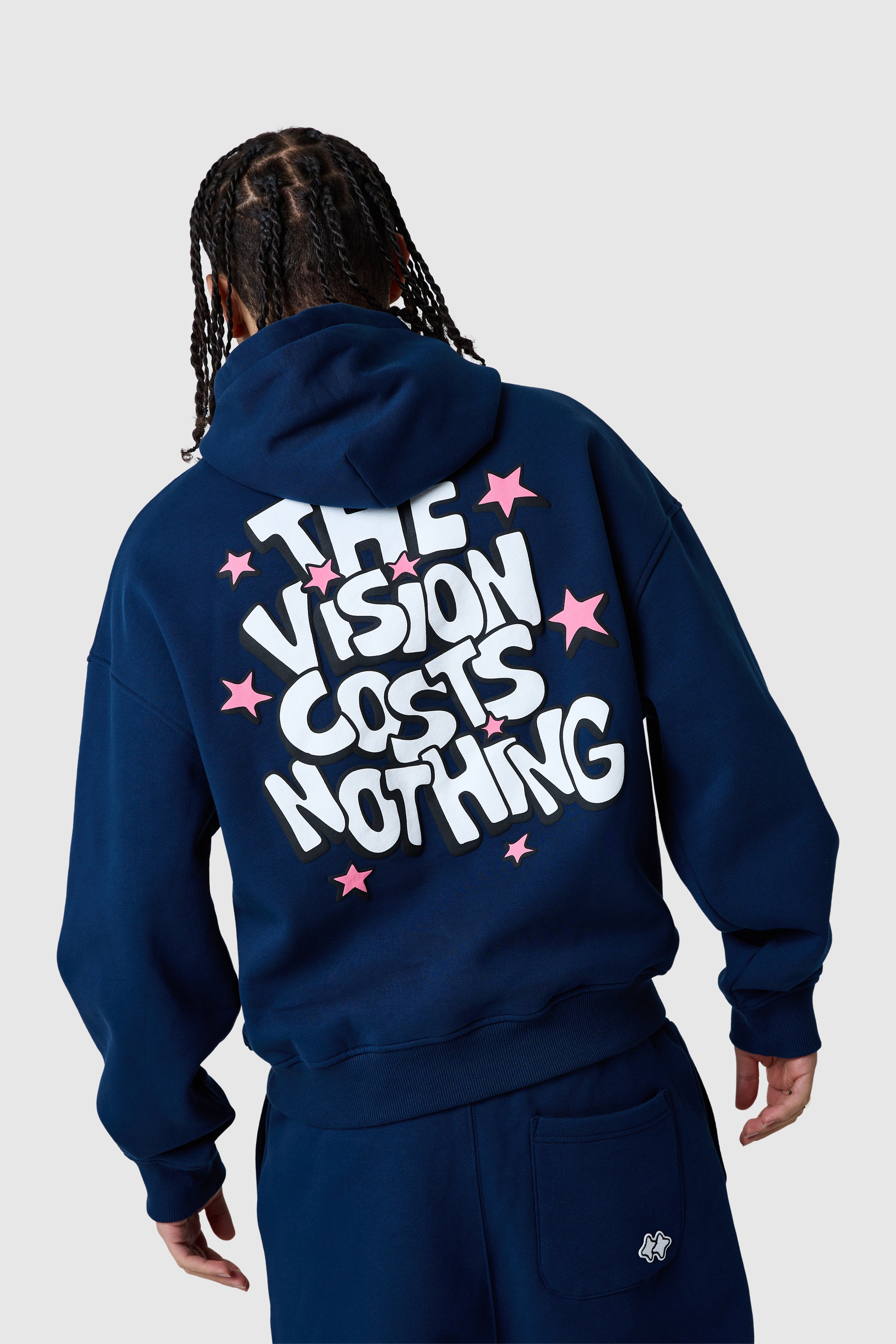 Designed with a relaxed, drop-shoulder fit, the Vision Costs Nothing Hood offers ultimate comfort. Featuring a bold puff print and ribbed cuffs and hem, it pairs perfectly with the matching fleece jogger for a complete look.