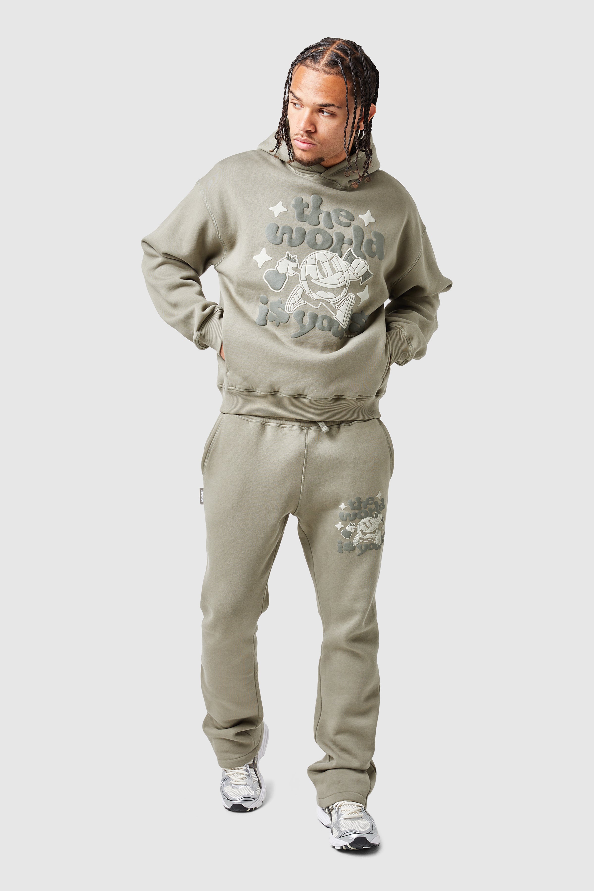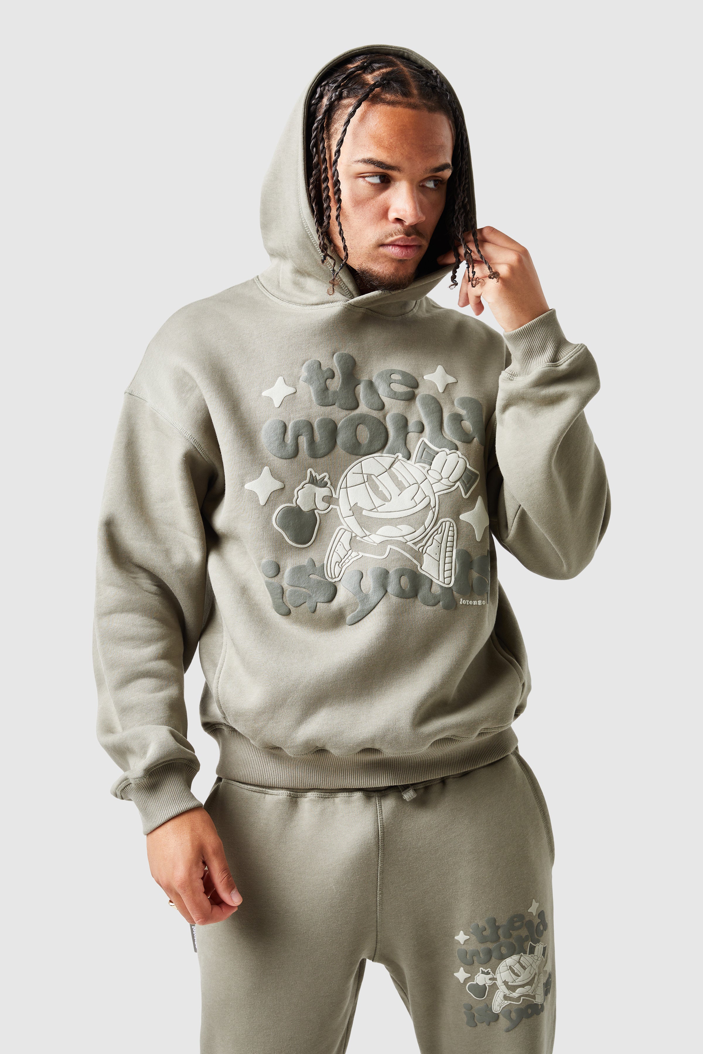 De World Is Yours Hood heeft een relaxte pasvorm met verlaagde schouders en biedt ultiem comfort, gemaakt van 100% katoen. Met een opvallende grafische zeefdruk en geribbelde manchetten en zoom is hij perfect te combineren met de bijpassende fleece joggingbroek voor een complete look.